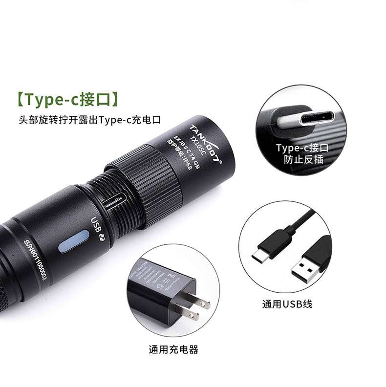 多檔調(diào)光設(shè)計(jì):直充防爆電筒手電筒帶有高亮、低亮、頻閃功能,必要時(shí)可用于發(fā)送求助信號(hào)。
